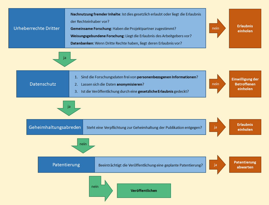Vor der Veröffentlichung von Forschungsdaten muss sichergestellt werden, dass dies nicht die Rechte Dritter verletzt.